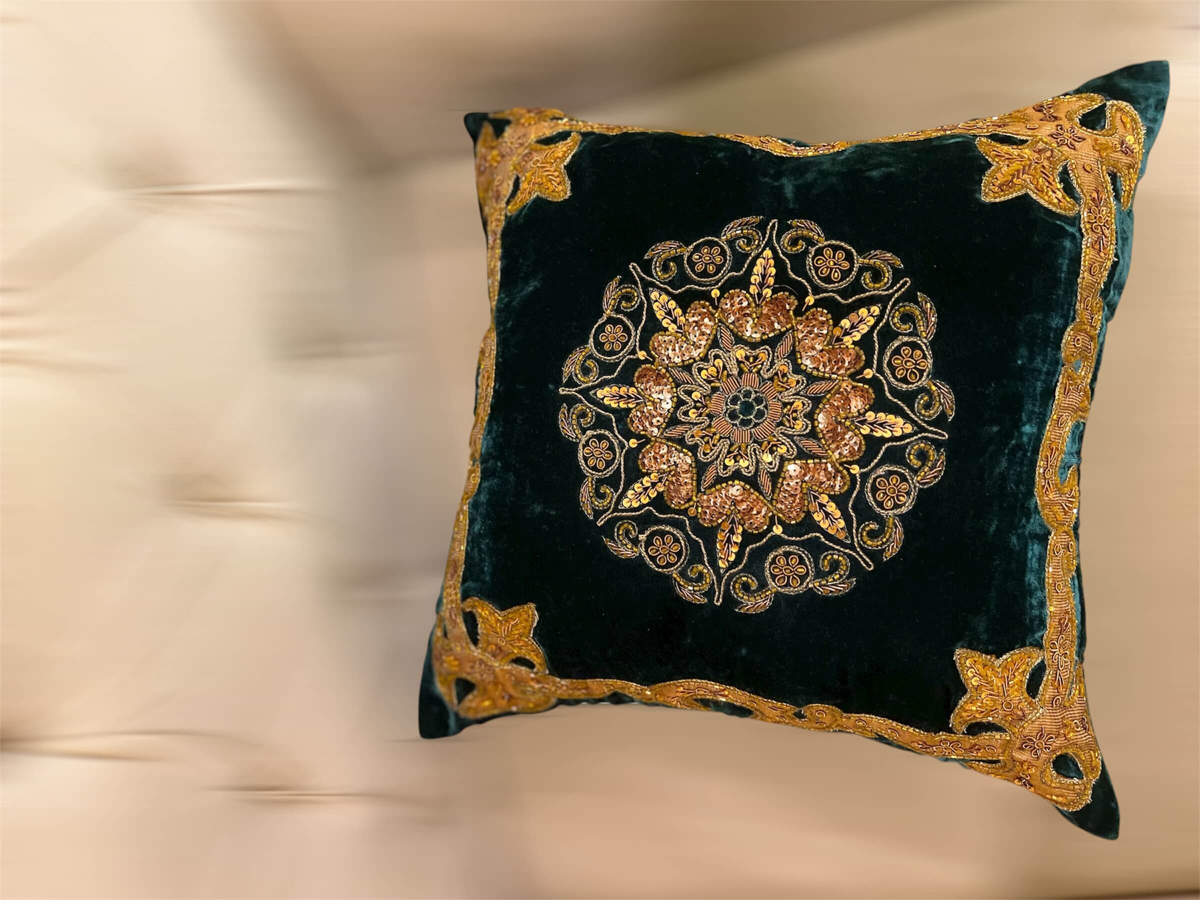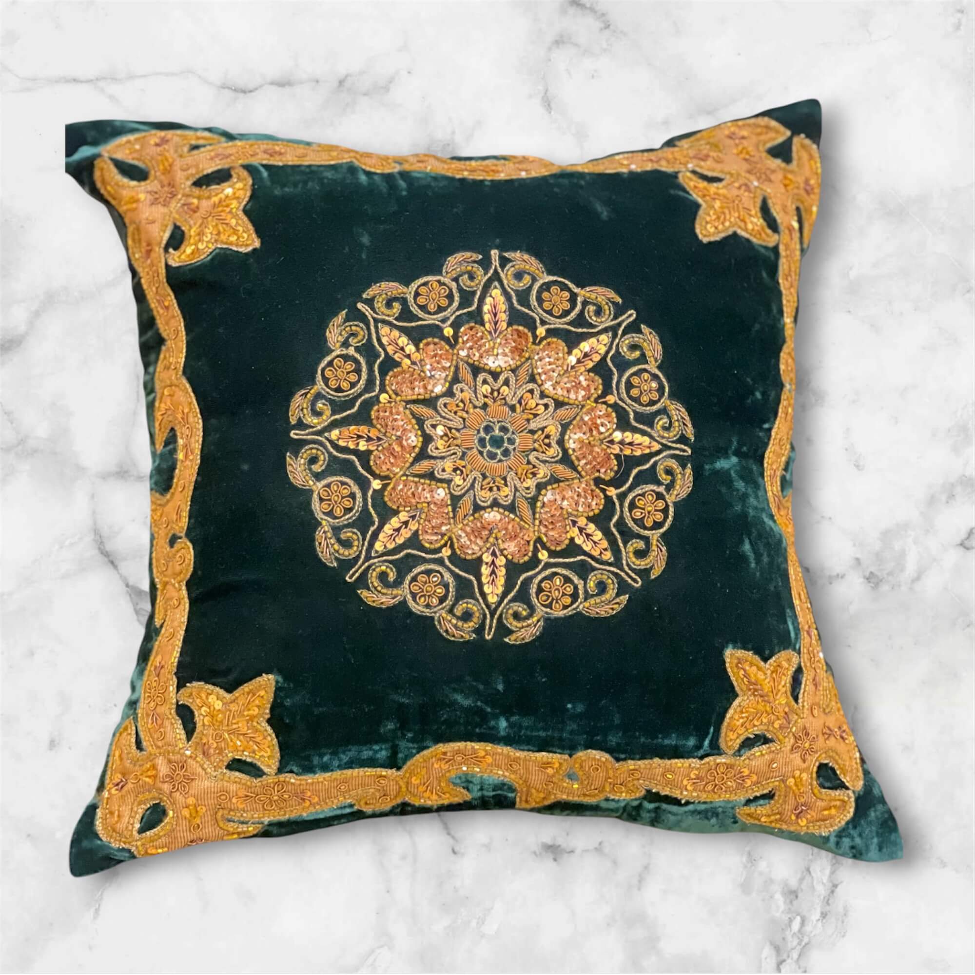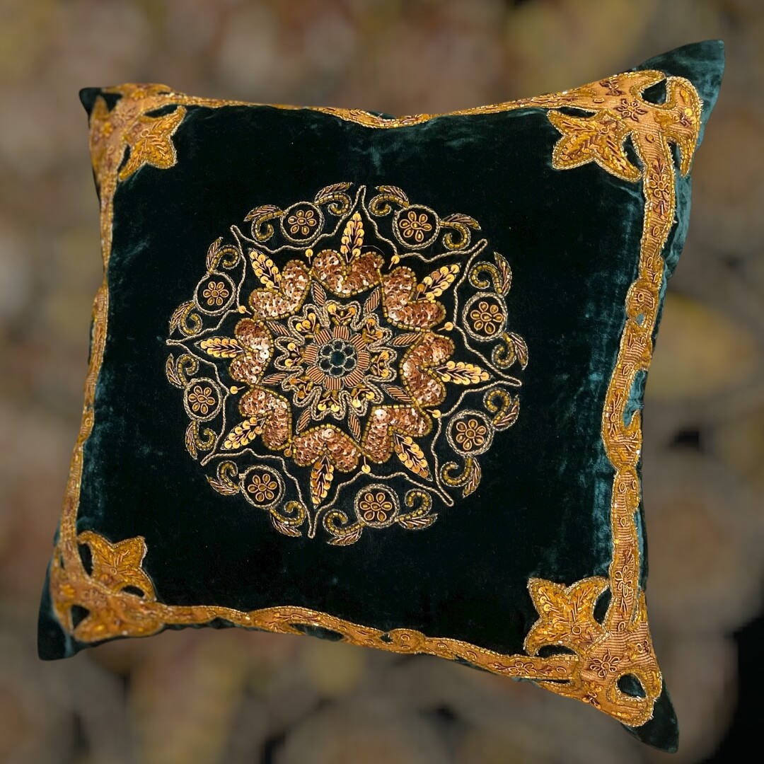 Sultan is our premium cushion cover. It is made on high quality velvet fabric and is decorated with sequins, cut dana, dori work and patch work.
